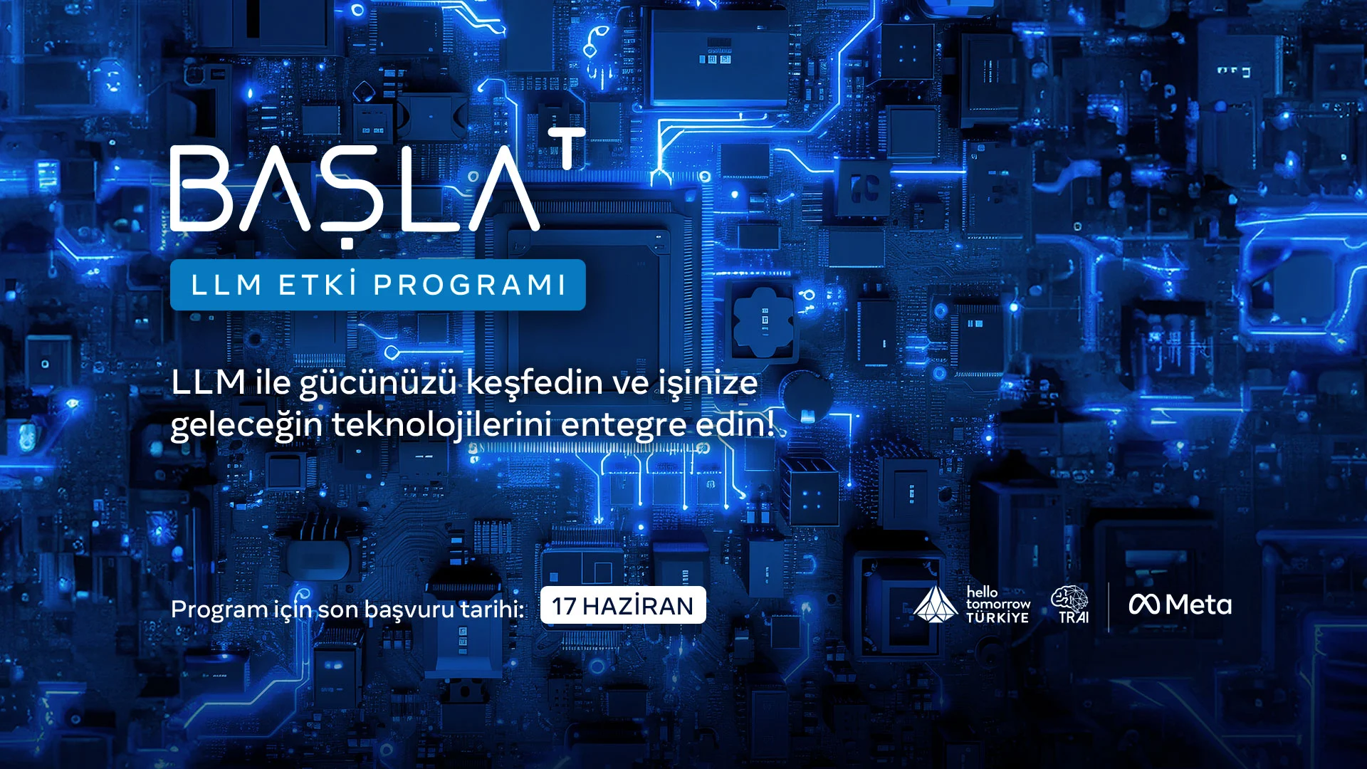 Başlat Programı, META ve Hello Tomorrow Türkiye iş birliğiyle birkaç yıldır gerçekleştirilmekte olan bir program. Bu yıl ise programın tek odak konusu yapay zeka olması münasebeti ile TRAI ile işbirliği yapmayı arzu ettiler. Şu anda programımıza başvurular devam ediyor ve son tarih 17 Haziran.